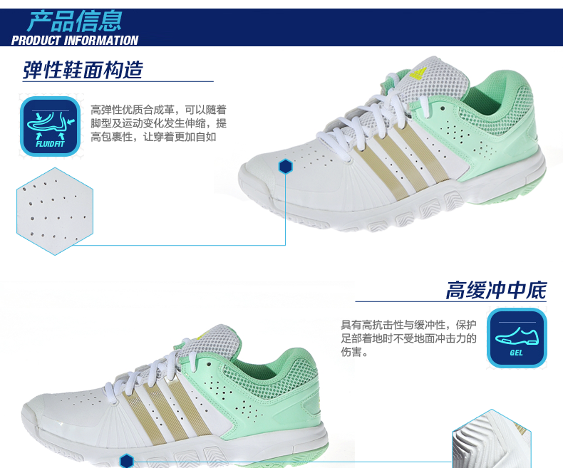阿迪達斯女鞋adidas女子多功能室內羽毛球鞋運動鞋 B22955