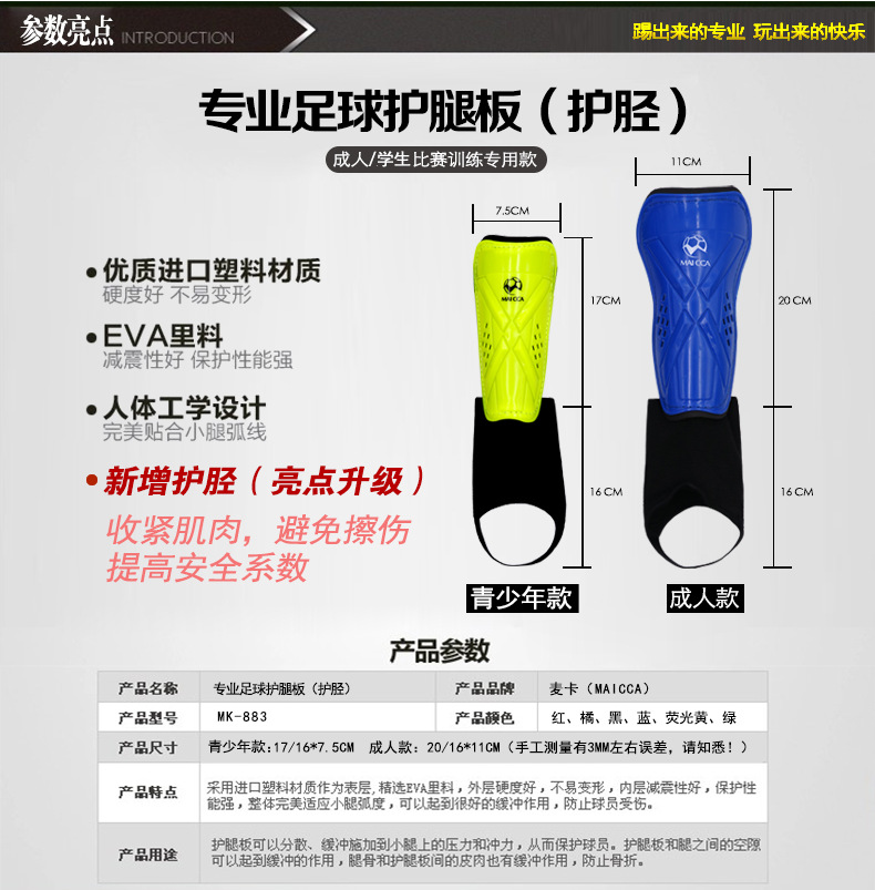 麥卡足球MK-883護腿板 足球護腿板 足球訓練器材裝備 護脛板