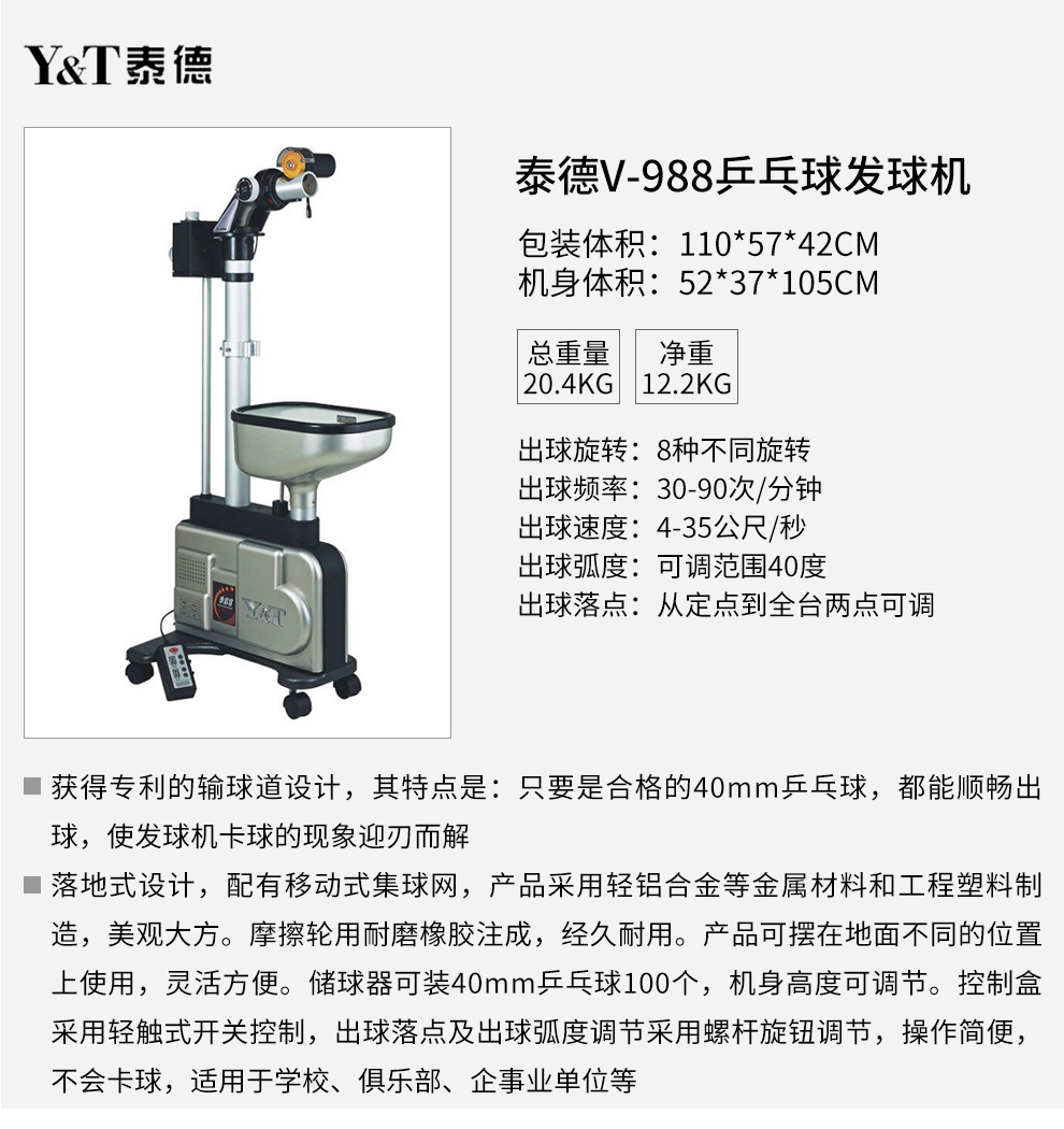 泰德V-988乒乓落地式訓練專用智能乒乓發球機
