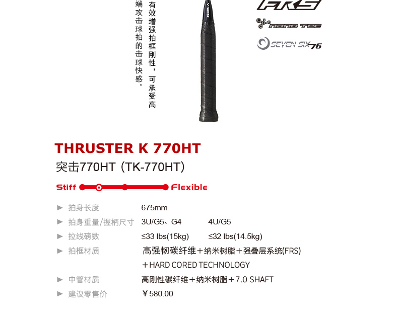 VICTOR威克多羽毛球拍單拍碳素業(yè)余初中級(jí)進(jìn)攻突擊系列TK-770 HT